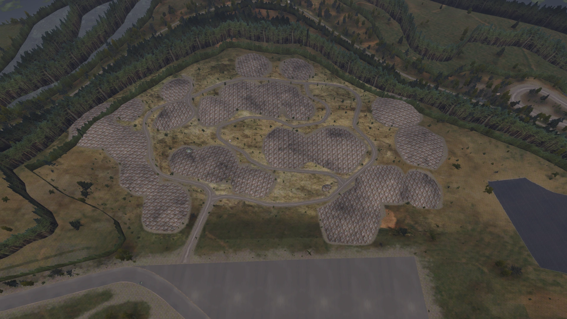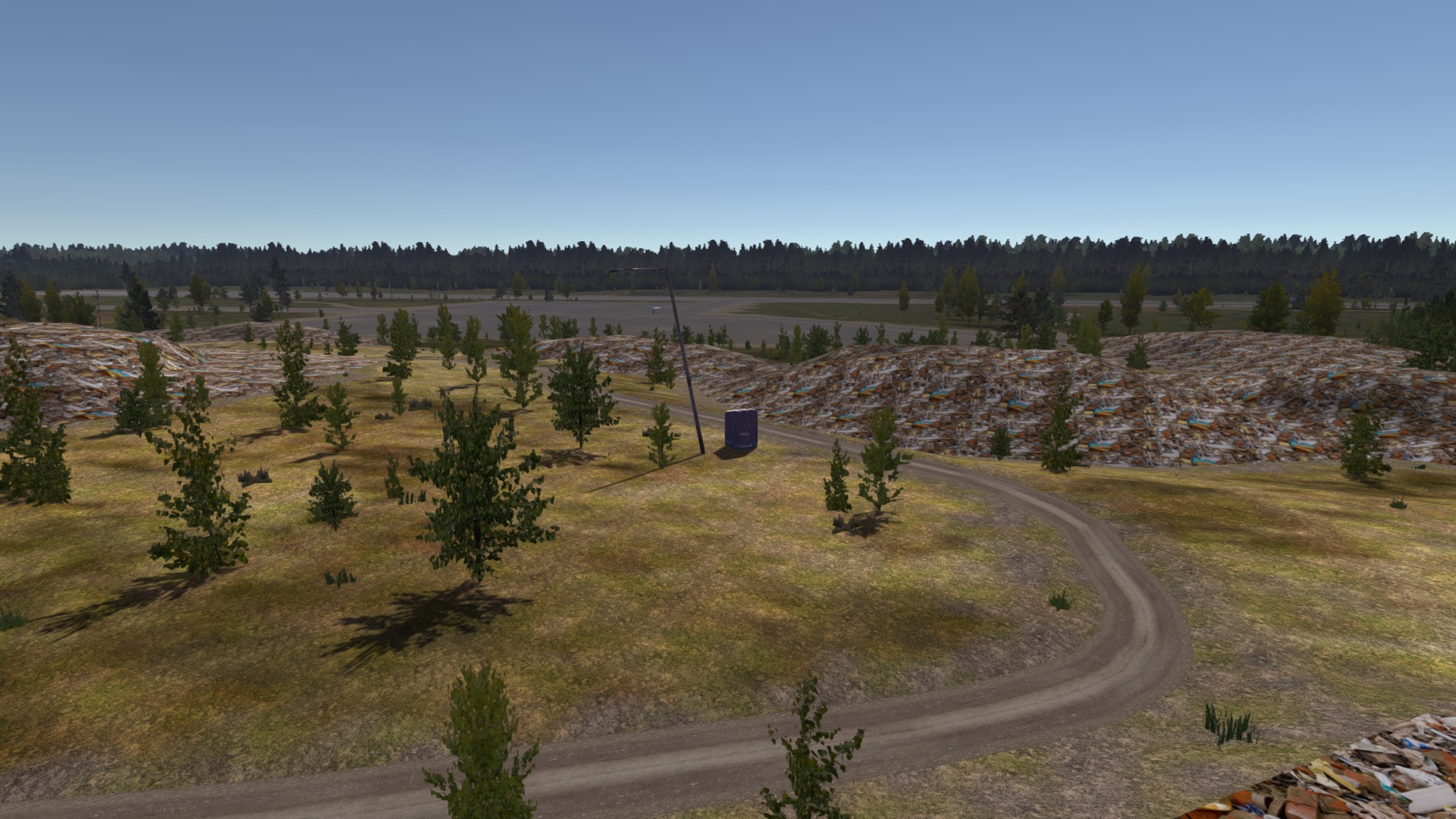 The landfill area used to be quite bare, with the ground being a greyish-green color, but in the 07.07.2021 patch, trees were added and, a bit earlier, the ground texture was changed to be more yellow.