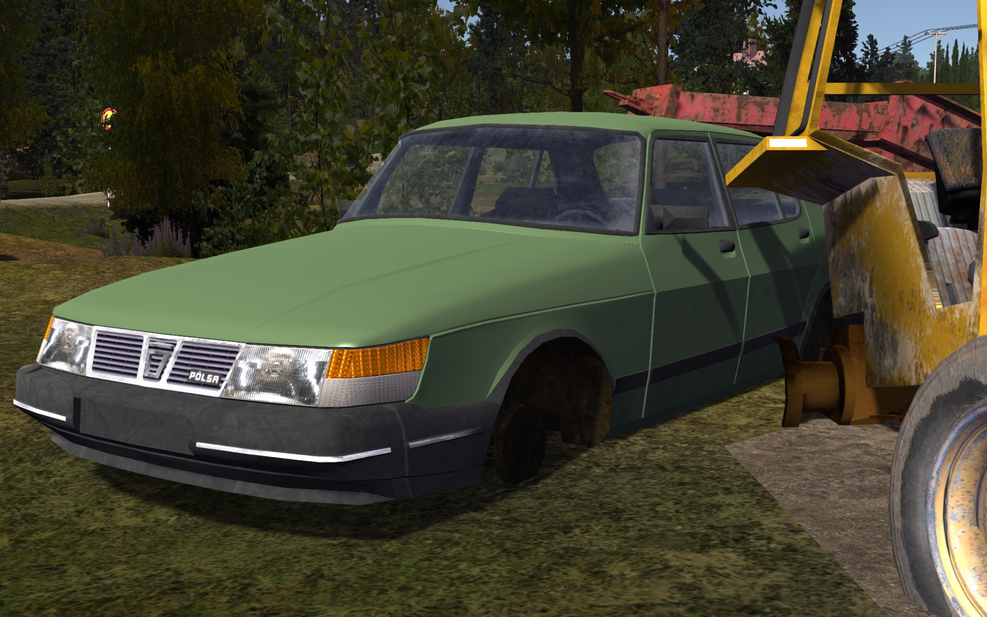 The green Pölsa sits next to Fleetari's repair shop. It's in decent condition, but it's missing parts - it seems that Fleetari uses this car for spare parts. The car cannot be moved in any way.